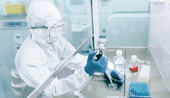 手術室の基準値の10分の1相当の極めてクリーンな環境で作業が行われます。